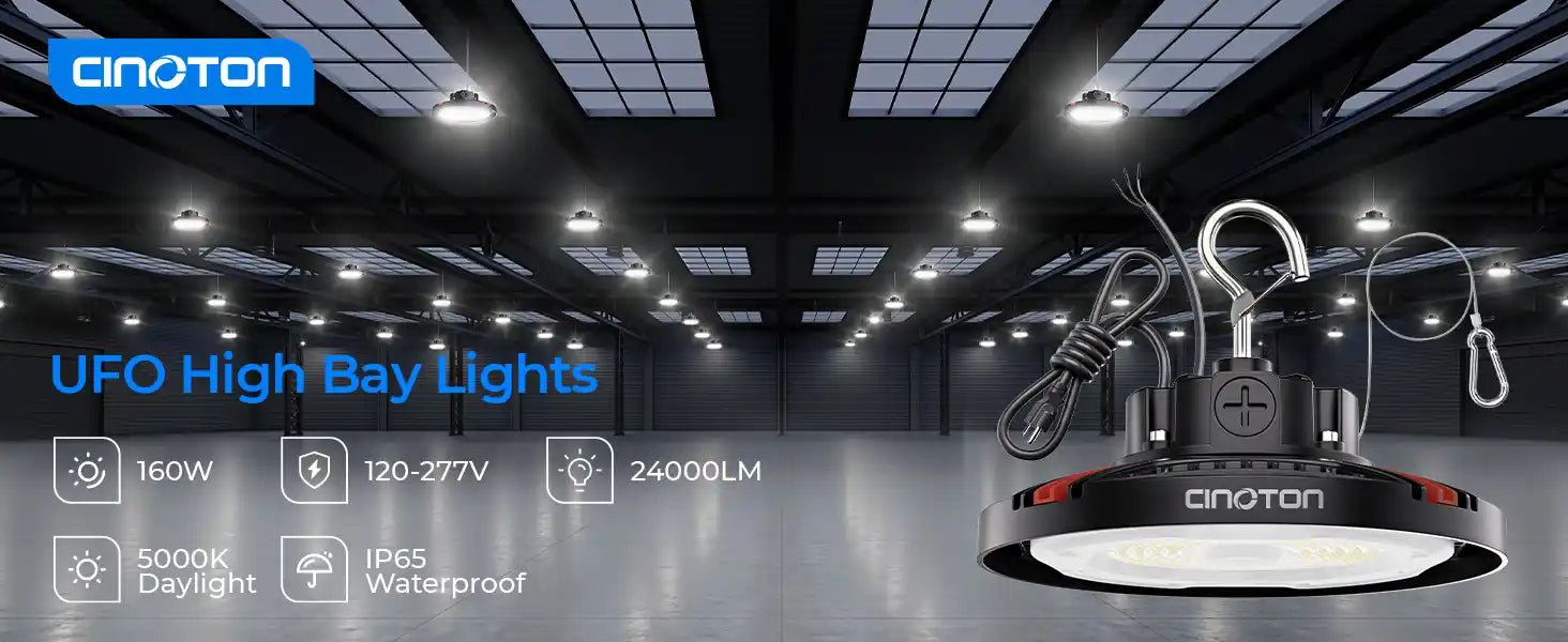Illuminate your space with the Cinoton LED High Bay Light. This 160W light delivers an impressive 24,000 lumens, ensuring bright and clear visibility in warehouses, gyms, and industrial settings.